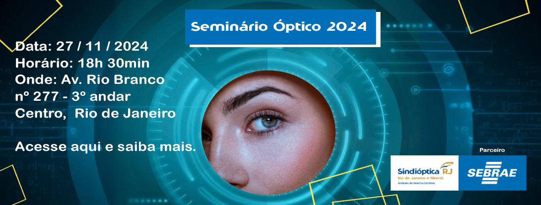 Seminário Óptico 2024 05/11/2024 14:17 Participe do Seminário Óptico 2024 em parceria com o SEBRAE RJ, e fique por dentro das tendências e oportunidades do setor. O seminário é Gratuito